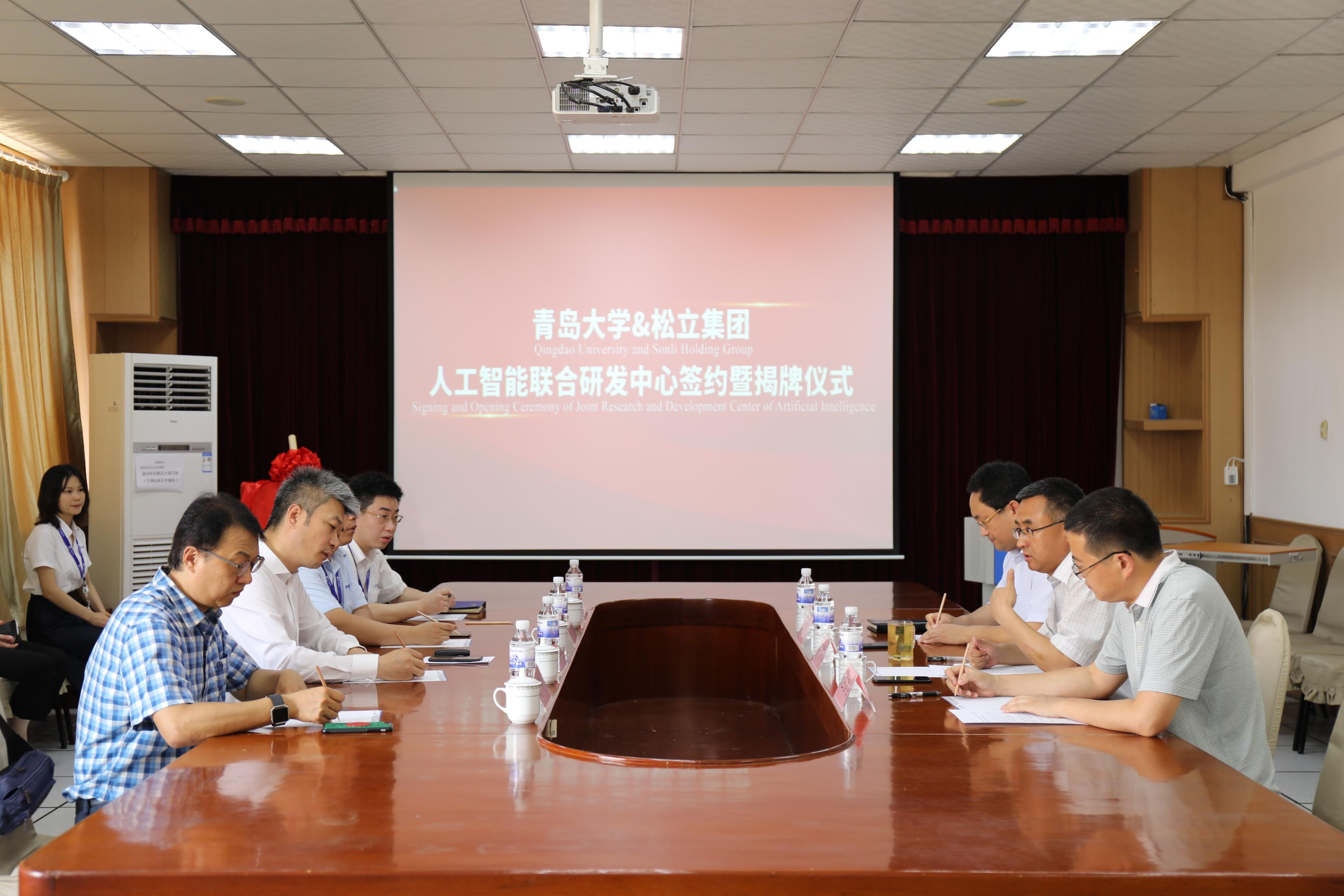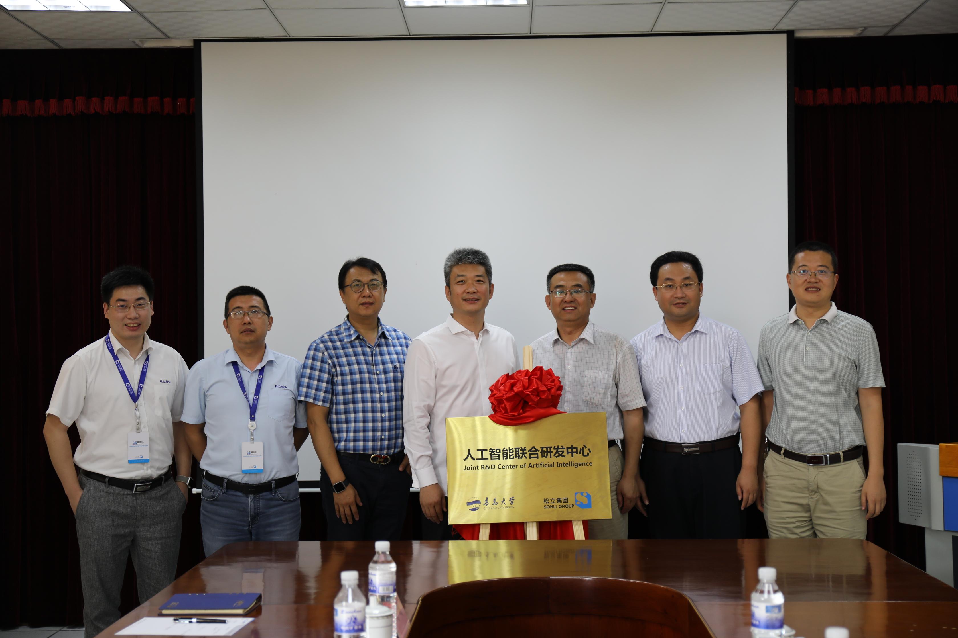 7月15日下午,十大菠菜网导航 与松立集团“人工智能联合研发中心”签约暨揭牌仪式在博知楼510会议室举行。院党委书记尹增刚、院长李建波、副院长王国栋及松立集团董事长刘寒松,副总经理高评、王永,研发总监刘瑞出席仪式。