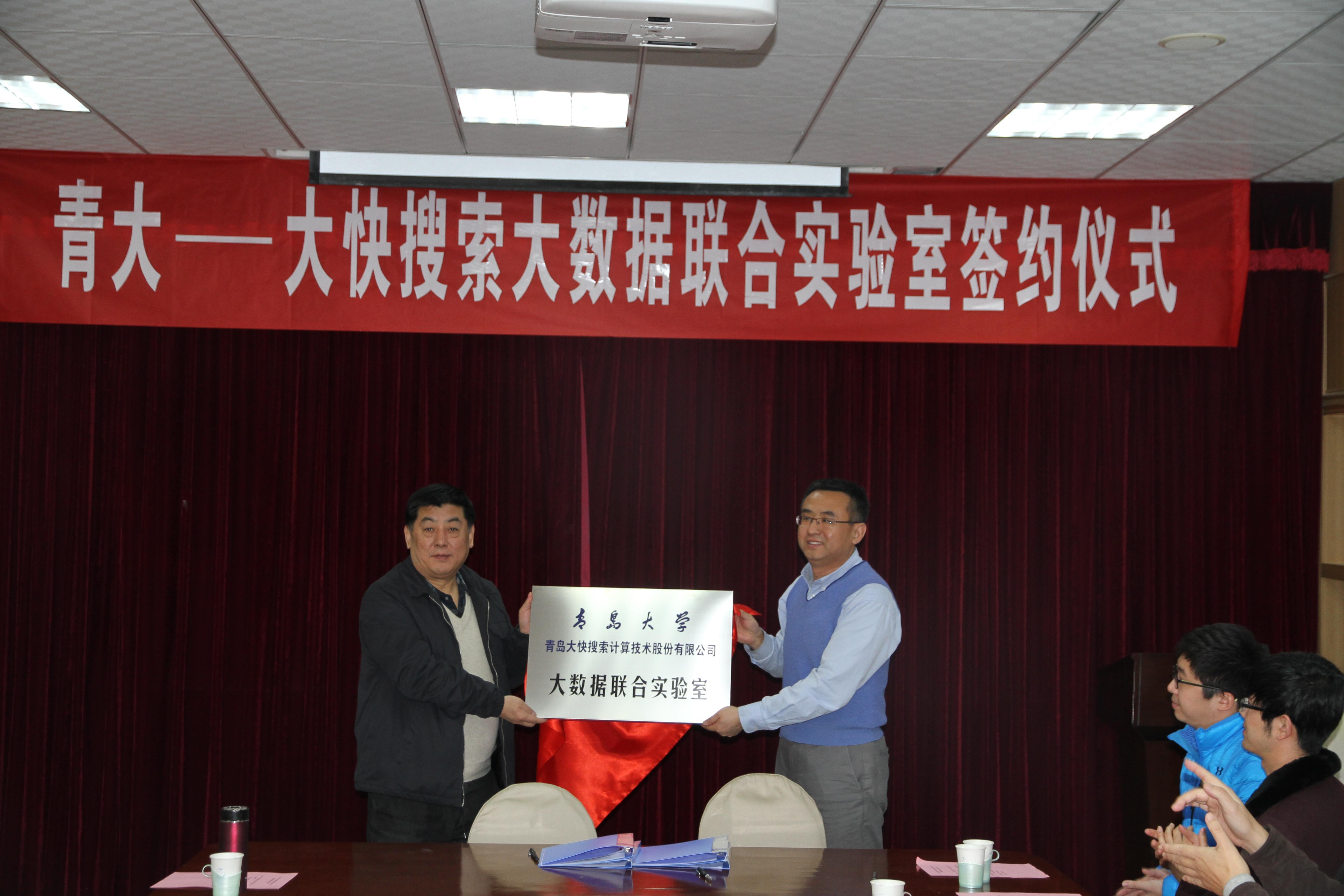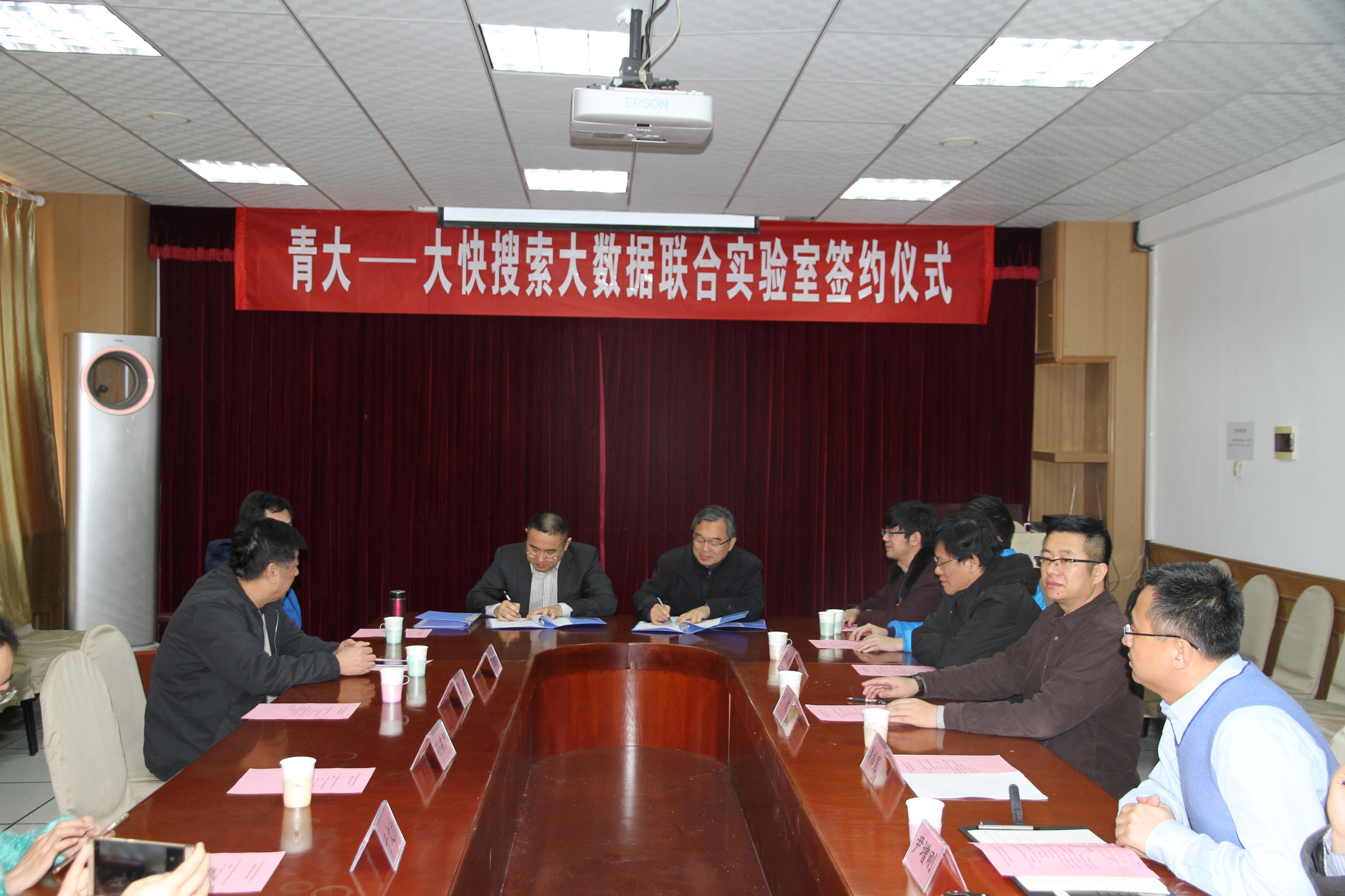 2017年1月16日上午在博知楼510会议室,青岛大学十大菠菜网导航 与青岛大快搜索计算技术股份有限公司举行合作签约仪式,成立了“青大-大快搜索大数据联合实验室”。
