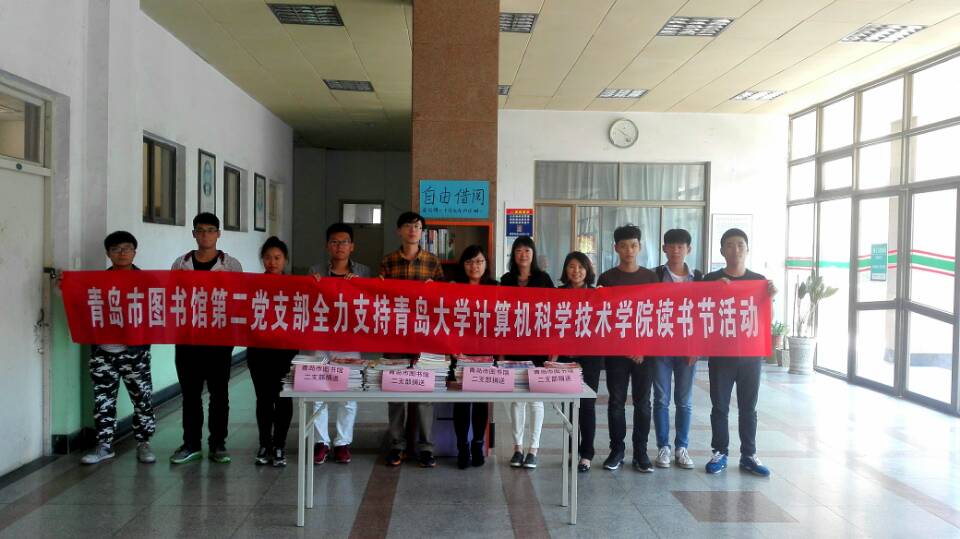 5月11日上午,青岛市图书馆二支部向菠菜网 捐赠书刊杂志200余册,院党委副书记于文,团委书记修宁宁接待了图书馆代表刘英等人并表示感谢。