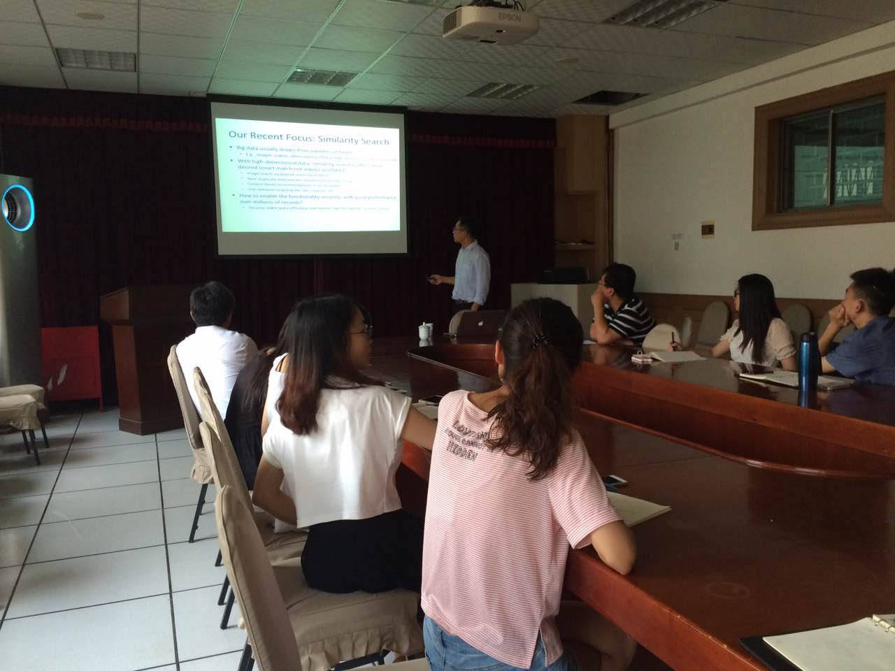 2016年7月15日上午,菠菜网 在博知楼510会议室举办了题为“大数据安全搜索:挑战与进展”的专题学术讲座,特邀纽约州立大学布法罗分校计算机科学与工程系Kui Ren(任奎)教授主讲,信息安全研究领域的师生们参加了此次讲座。