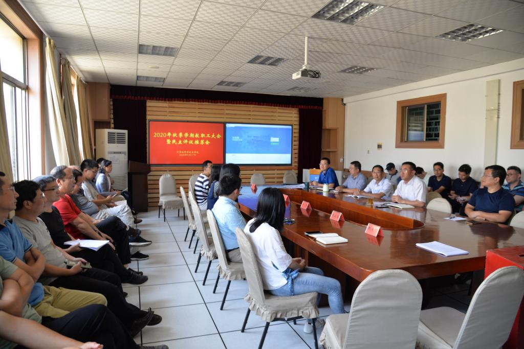 9月17日下午,菠菜网 在博知楼510会议室召开2020年秋季学期教职工大会暨专业技术职务民主评议推荐会,传达学校近期重点会议精神,通报和部署教学科研、学科建设、人才培养、管理服务等方面工作,评议推荐2020年度专业技术职务校聘岗位竞聘人。院党委书记尹增刚主持会议,党委组织员武绍学,院党委副书记周鹏,副院长于佳、王国栋和80余名教职工参加会议。