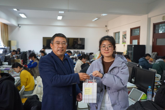 12月15日上午,计算机科学技术学院举办“为考研学子送温暖”活动,院党委副书记张磊、周鹏,2018级辅导员老师辛克恒、姜彬、陶晓赟前往教室、学生公寓,将530份心意满满的“一研为定”考研大礼包送到考研学子手中。