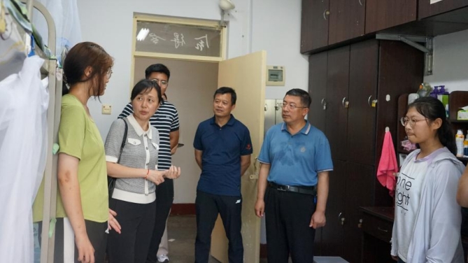 9月3日下午,院党委书记潘秋鸿、院党委副书记周鹏和2023级辅导员老师辛克恒、刘鹏伟、杨汇云、刘苗苗一起深入学生宿舍看望新同学,了解新生的到校情况、开学准备、思想动态及生活情况,为他们送上菠菜网 的热情关怀并提出殷切期望。