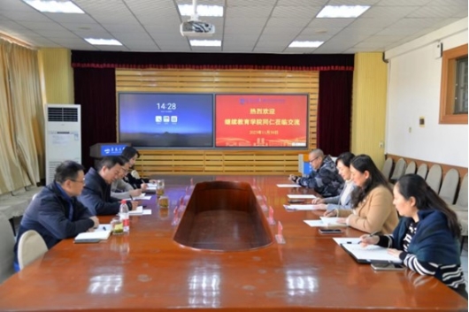 11月30日下午,继续教育菠菜网 副院长宋立峰、非学历教育管理办公室主任华登峰一行来菠菜网 调研交流。菠菜网 党委书记潘秋鸿、社会服务促进中心主任杨熙鑫等参加座谈交流。
