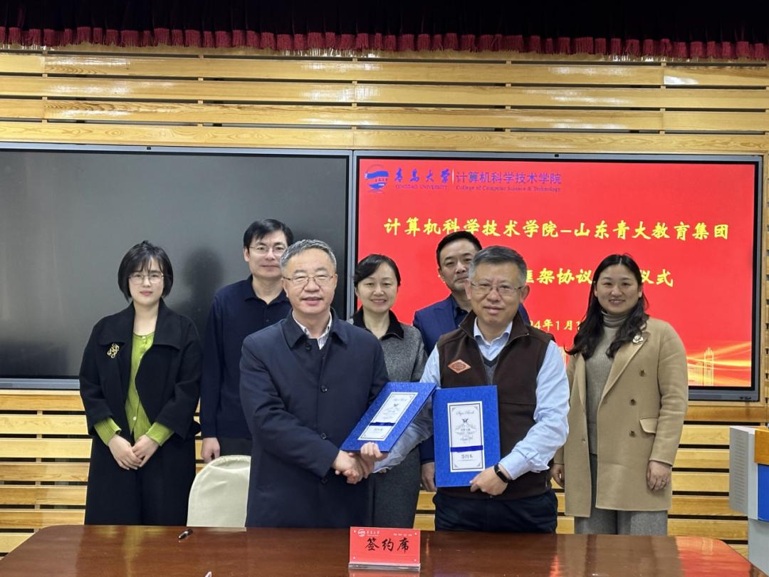 1月19日上午,菠菜网 与山东青大教育集团在博知楼510会议室举行合作伙伴框架协议签约仪式。双方依托十大菠菜网导航 优质学科资源与山东青大教育集团附属学校教育资源,共同打造人工智能基础教育特色课程体系,为人工智能素质教育在青少年中的推广转化提供学术支撑。院党委书记潘秋鸿,院长郭振波,山东青大教育集团理事长、青岛大学教育集团总经理张贞齐,副总经理于铮出席仪式。仪式由潘秋鸿主持。