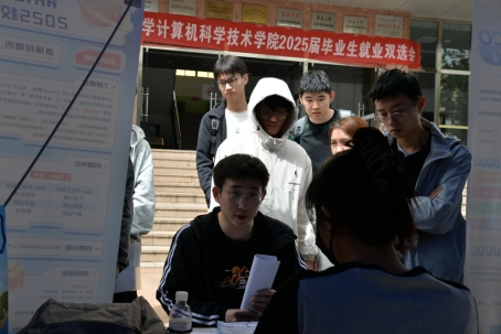 4月17日下午院在博知楼前举办2025毕业生春季就业双选会。本次双选会精准对接计算机类人才市场需求邀请了来自上海、济南、青岛等地的22家优质企业校招聘,提供涉及软件开发、数据分析产品测试等岗位300余个,吸引了400余名学生前来应聘,累计收到简历超800份。