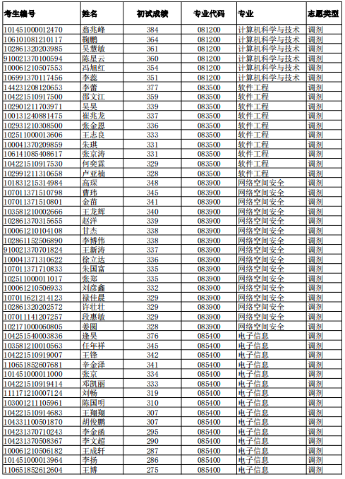 2021年第一批次调剂考生复试名单