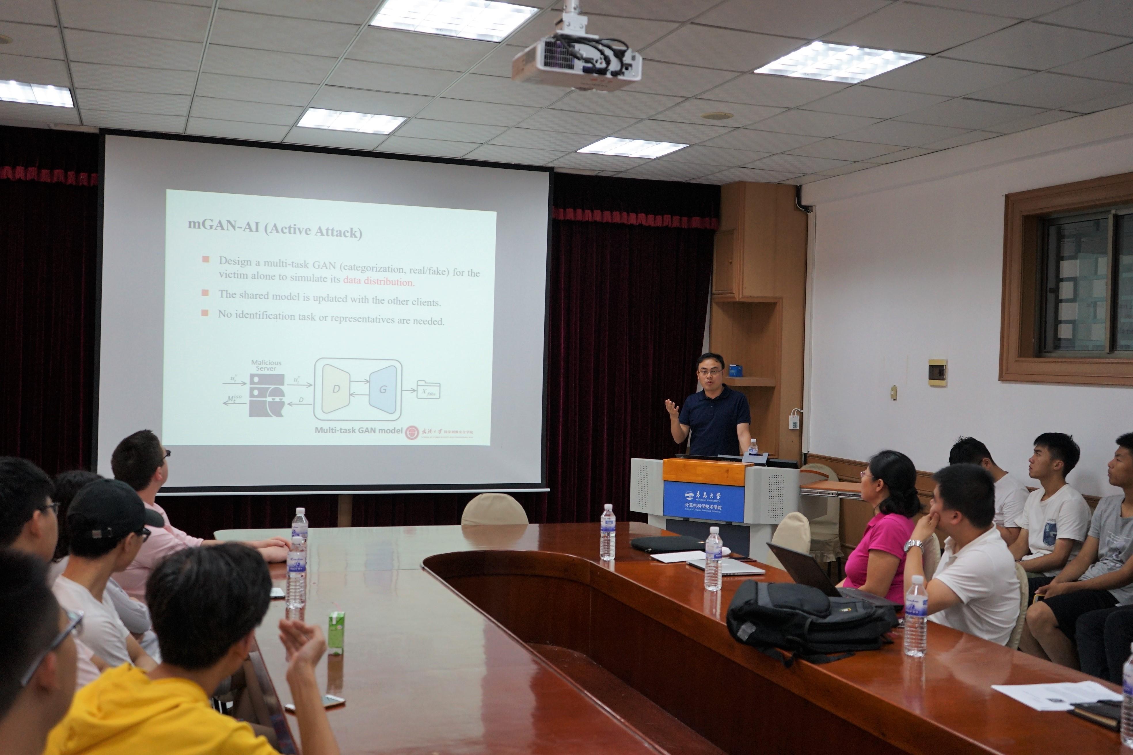 7月9日上午,武汉大学教授王志波应邀在博知楼510会议室为菠菜网 师生作了题为《面向联邦学习的用户级隐私攻击》的夏季学期高端学术报告。100余名师生代表参加报告会。