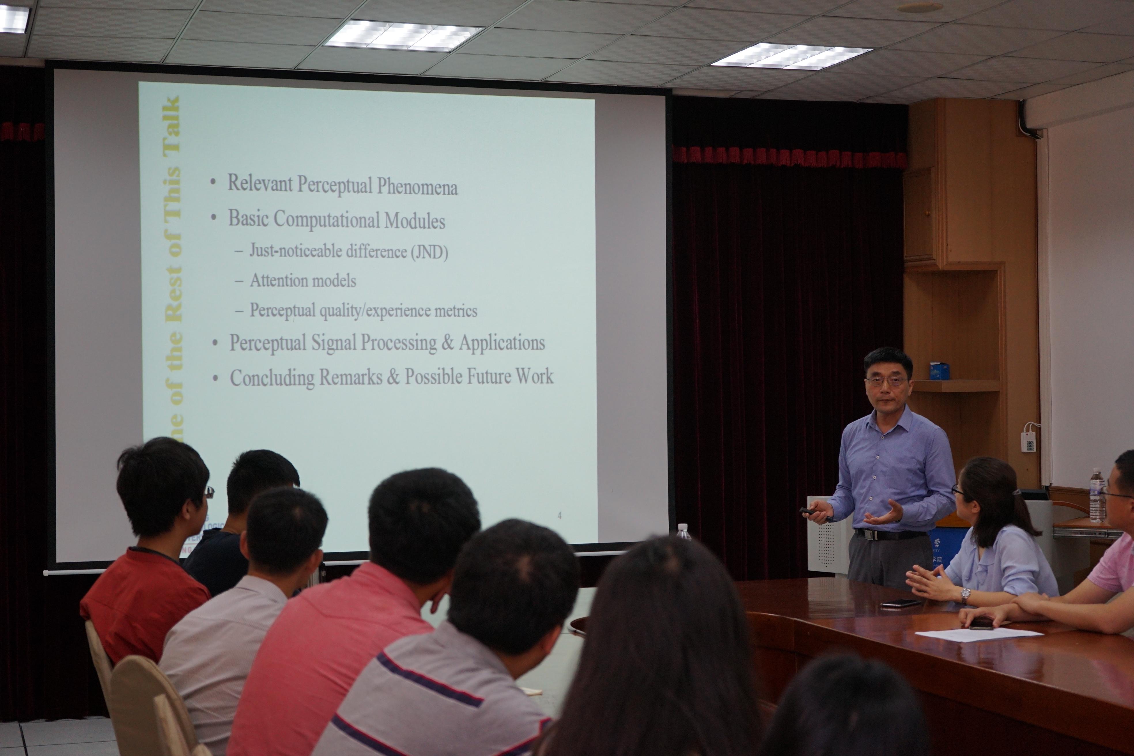 报告中,Weisi Lin简要介绍了视觉计算的优势,指出视觉计算具有很好的理由以类似的人类感知和反应方式处理视觉信号,即图像,视频,图形,动画,屏幕内容以及相关的组合或变化等。他向到场师生阐述了视觉信号感知计算的主要问题和研究进展,并和大家一起讨论了视觉注意力,明显差异和感知信号质量度量等基本计算模型。之后,Weisi Lin列举了不同的感知灵感信号处理技术,并讨论了未来的研究和开发可能性,包括新兴大数据,云媒体,AI/VR/AR和包括声音,气味、触觉和味觉的多媒体等。