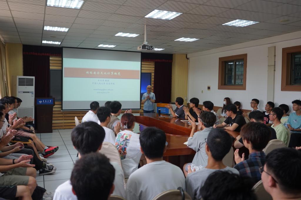 7月13日下午,中国人民大学信息菠菜网 教授石文昌在博知楼510会议室为菠菜网 师生作了主题为“网络安全文化计算概览”的夏季学期高端学术报告。副院长于佳以及菠菜网 70余名师生代表等参加报告会。