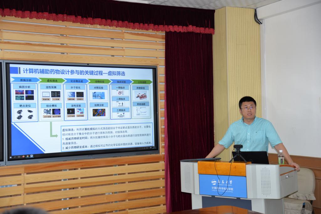 7月15日下午,青岛大学特聘教授李臻博士在博知楼510会议室为菠菜网 师生作题为《基于人工智能的计算机辅助药物设计》的夏季学期高端学术报告。本次报告会采用了线上线下同步进行的方式,副院长周强主持报告会,90余名师生代表参加报告会。