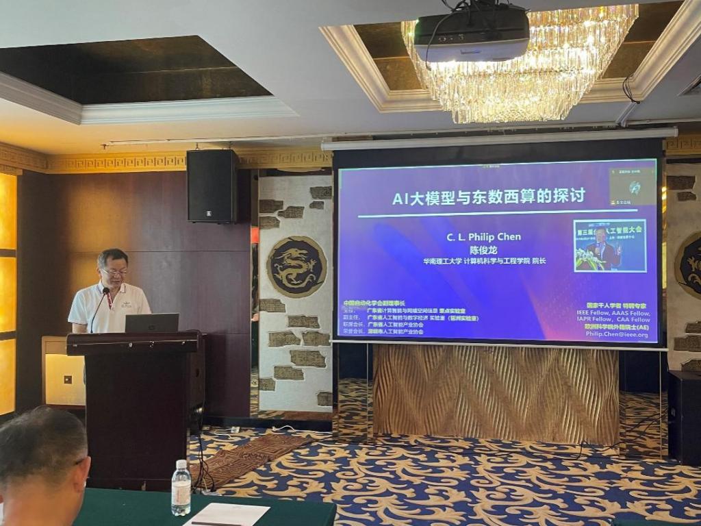 陈俊龙院士作了题为“AI大模型与东数西算的探讨”的报告,从“东数西算”和AI大模型的概况、AI大模型的高性能计算优化算法/能效建模、面向智能制药场景的AI大模型实践、AI大模型的理论探讨、AI大模型+“东数西算”的展望等5个方面详细介绍了所开展的研究工作、问题与挑战、突破方向。指出在算法之外,算力在数据科学领域的重要性。他细致回答了现场提问,为青年学者的指点研究方向。