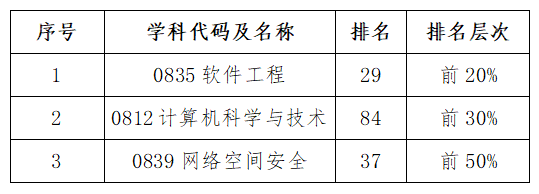 在2022年排名中,软件工程学科位列全国第29位,首次进入前20%,比上期榜单上升5位;计算机科学与技术学科位列第84位,进入前30%,比上期榜单上升14位;网络空间安全学科位列第37位,排名全国前50%。