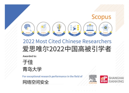 3月28日,全球性信息分析公司爱思唯尔(Elsevier)正式发布了2022“中国高被引学者”(Highly Cited Chinese Researchers)榜单,菠菜网 于佳教授入选该榜单。