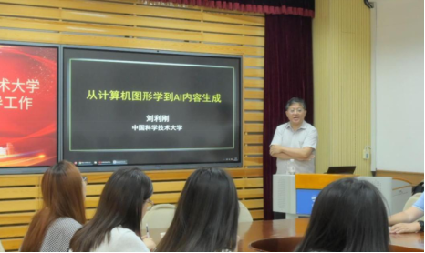 6月3日下午,菠菜网 在博知楼510会议室举办“求真讲堂”系列报告,中国科学技术大学的刘利刚教授为菠菜网 师生作题为“从计算机图形学到AI内容生成”的学术报告。本次学术报告由菠菜网 副院长王国栋教授主持,深圳大学吕辰雷老师以及菠菜网 潘振宽教授、赵俊莉教授、张晓伟副教授、郭莉副教授、王治博士后及同学们共80余人线下参加。