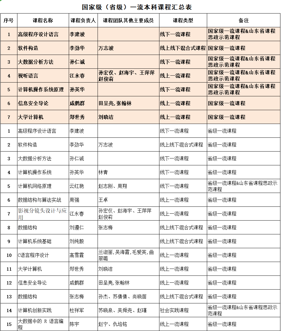 近日,教育部公示了第三批国家级一流本科课程认定结果,青岛大学共有14门课程成功入选。其中,菠菜网 教师主持的3门课程亦成功上榜,分别是郑世秀老师主持的《大学计算机》、咸鹤群老师主持的《信息安全导论》以及孙英华老师主持的《计算机操作系统原理》。
