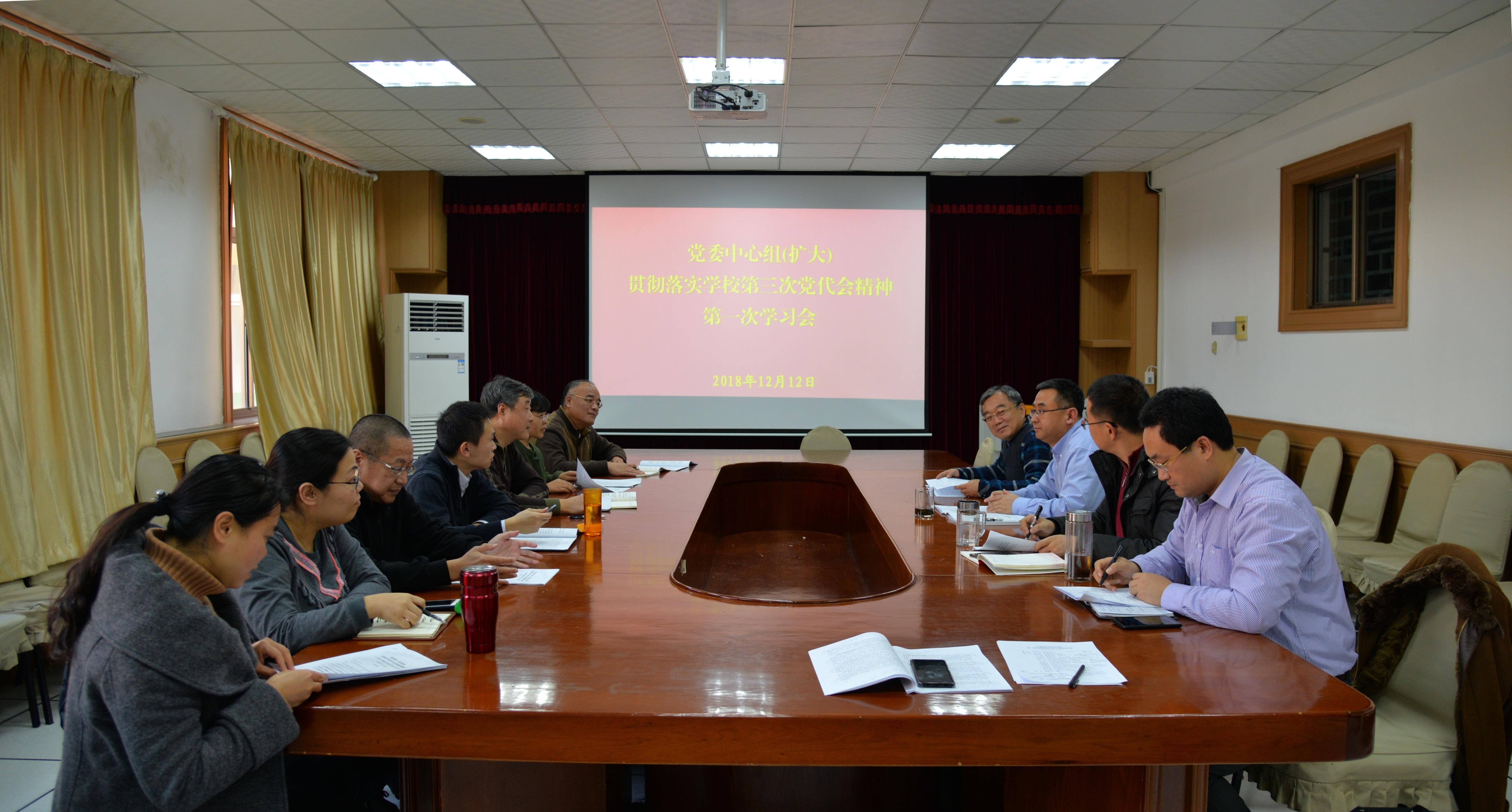 2018年12月12日下午,院党委中心组(扩大)举行“贯彻落实学校第三次党代会精神”第一次学习会,传达学习党代会精神。院党委书记尹增刚主持学习会并结合个人对党代会报告的理解交流学习体会。院党委中心组成员、院机关各部门工作人员参加了学习。