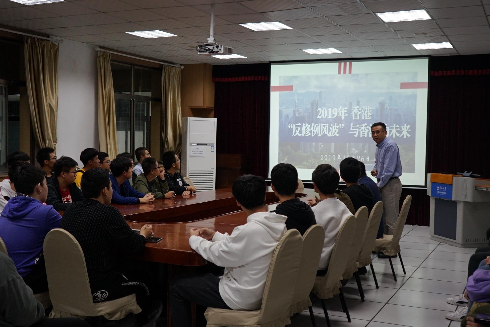 11月1日晚,计算机科学技术学院党委书记尹增刚在博知楼510会议室讲述《2019年香港“反修例风波”与香港的未来》,为菠菜网 70余名2018级和2019级“图灵创新实验班”的同学、院学生会主要成员上了一堂生动的形势与政策课和爱国主义教育课。党委副书记周鹏主持报告会,院团委书记王洋洋、学生党支部书记于茜参加报告会。