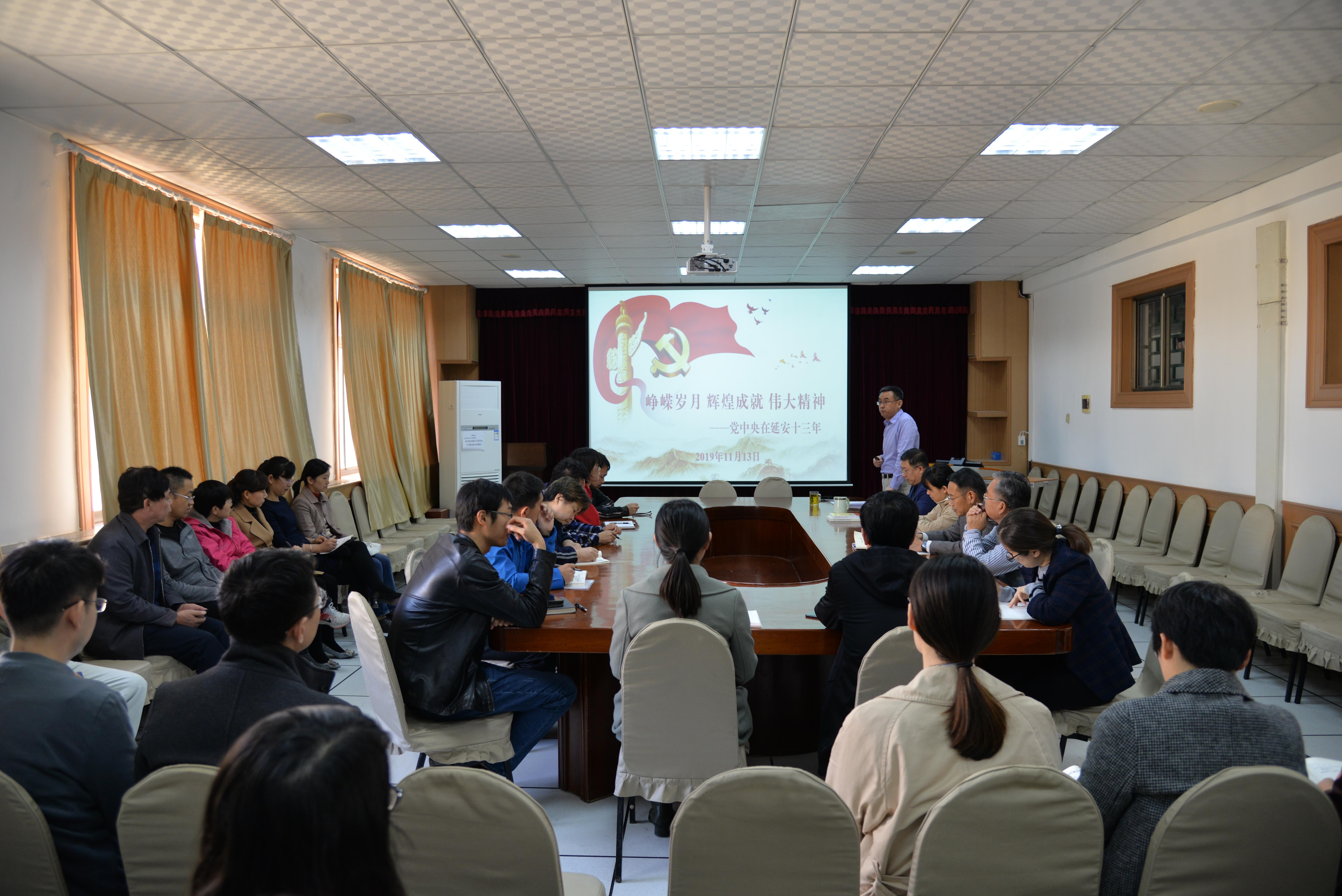 11月13日下午,院党委书记尹增刚在博知楼510会议室以《峥嵘岁月 辉煌成就 伟大精神——党中央在延安十三年》为题,为菠菜网 教师党员上了一堂生动感人的专题党课。学校“不忘初心、牢记使命”主题教育指导组成员、党委组织部主任科员官慎蕙参加党课。院党委副书记周鹏主持党课。