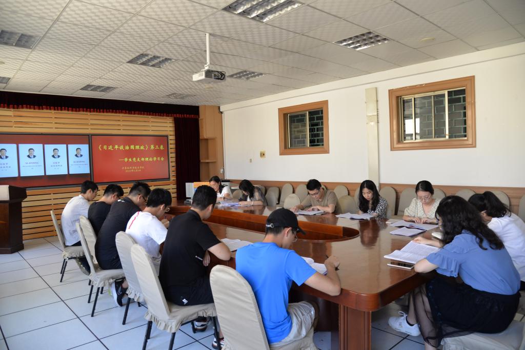 9月9日,菠菜网 学生党支部在博知楼510会议室召开理论学习会,集中学习了《习近平谈治国理政》第三卷第四专题“坚持以人民为中心”和习近平总书记在全国抗击新冠肺炎疫情表彰大会上的讲话,并进行了研讨交流。学生党支部书记于茜主持学习会。