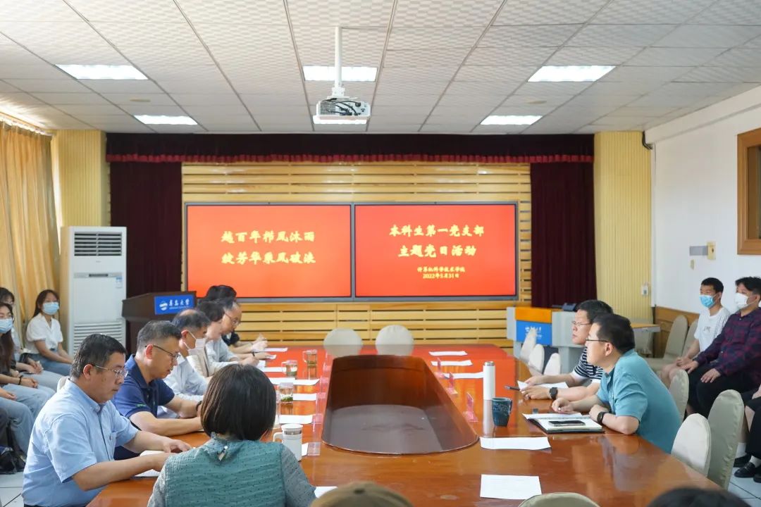 5月31日下午,校长夏东伟在博知楼510会议室参加菠菜网 本科生第一党支部“越百年栉风沐雨,绽芳华乘风破浪”主题党日活动。院党委书记潘秋鸿、院长郭振波、组织员毕叶、院领导班子成员、菠菜网 各党支部书记及本科生第一党支部全体党员参加活动。潘秋鸿主持党日活动。