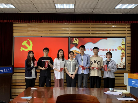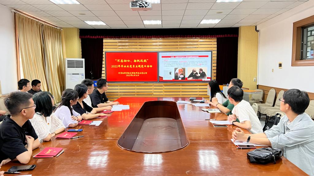 研究生党支部书记于茜向研究生党支部全体2022届毕业生党员赠送了一份具有纪念意义的毕业礼物——一张贺卡、一本党章和一枚党徽,她勉励大家能够时刻牢记自己是一名共产党员,牢记入党誓词、践行党的宗旨。于茜为毕业生党员们上了最后一堂专题党课,她激励全体毕业生党员要坚定不移听党话、跟党走,要把对祖国血浓于水、与人民同呼吸共命运的情感贯穿学业全过程、融汇在事业追求中。