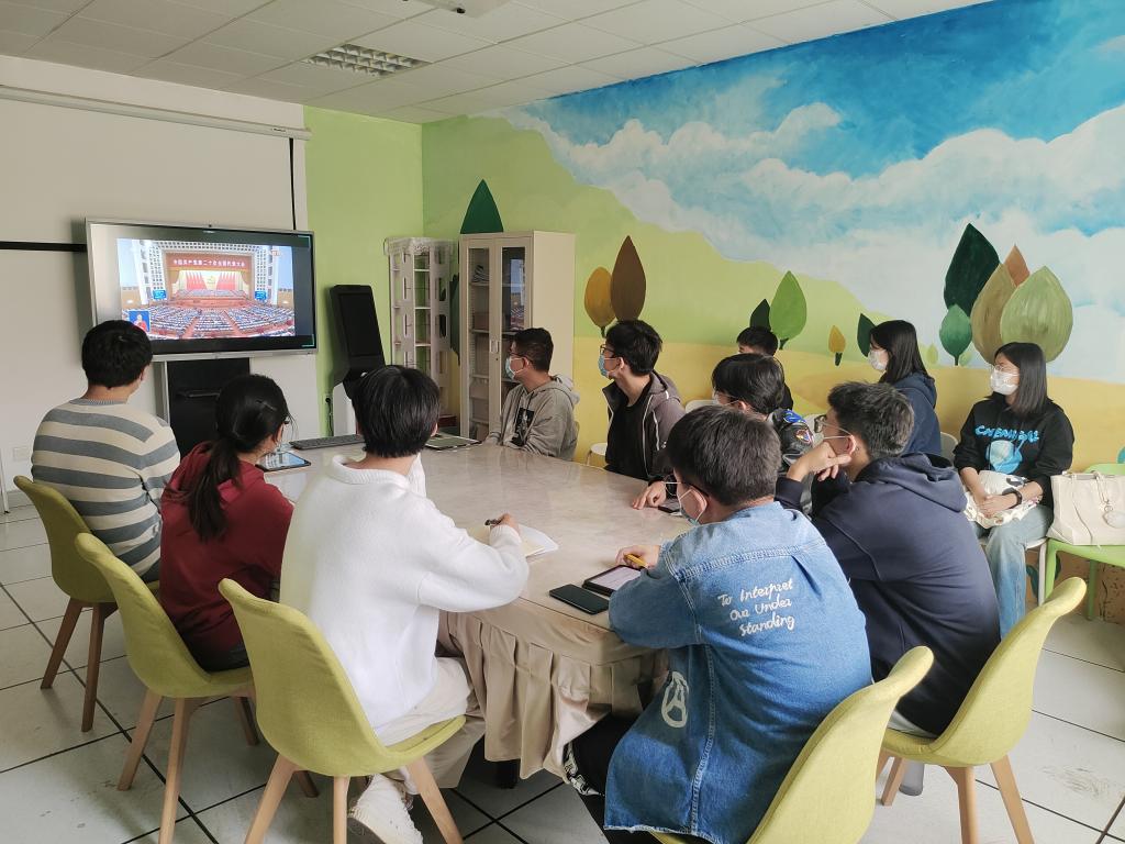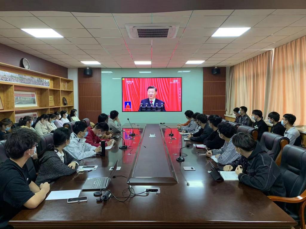 10月16日上午,菠菜网 组织全体党员干部、共青团员以理论学习中心组、党支部、团支部、宿舍为单位收看中国共产党第二十次全国代表大会开幕实况直播。院党委书记潘秋鸿,院长郭振波参加了在博知楼510会议室的集中收看活动,并和师生党员交流学习体会。