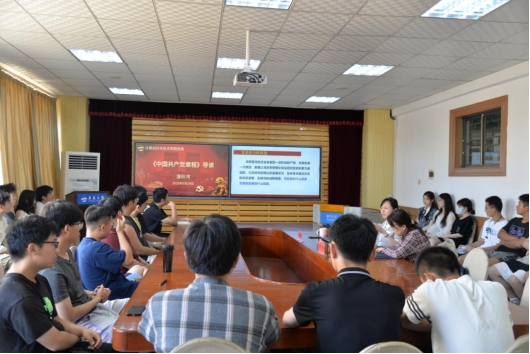 6月29日,菠菜网 在博知楼510会议室开展入党积极分子主题教育专题党课暨《中国共产党章程》导读学习会。院党委书记潘秋鸿主讲,学校主题教育督导组成员、党委组织员梁丽老师参加并督导学习会。