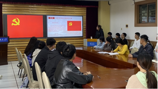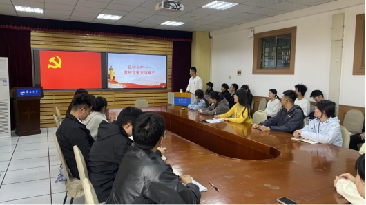 11月9日,菠菜网 本科生第二党支部在博知楼510会议室开展“铭记党徽党旗精神 筑牢政治信仰根基”主题党日活动。本次活动由党支部书记陶晓赟主持,支部全体党员参加。