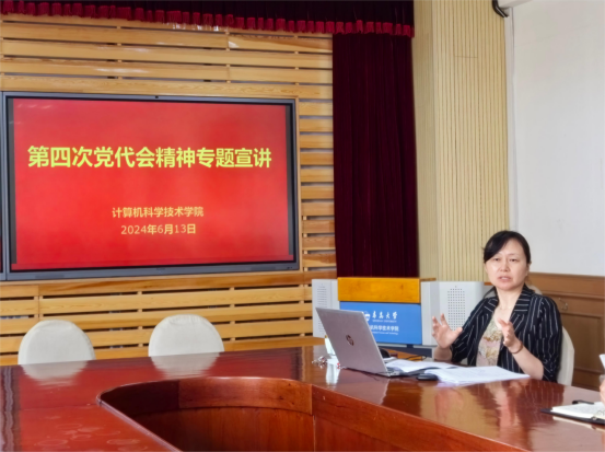 潘秋鸿强调,全院师生要切实把思想和行动统一到第四次党代会精神上来,充分认识、深刻领会、自觉对标,把智慧和力量凝聚到第四次党代会的发展思路和战略部署上来,结合菠菜网 发展实际,融会贯通、抓好落实、创新突破,为学校建成高水平综合性研究型大学做出计算机人应有的贡献。要求各党支部精心组织,将党代会精神的宣讲纳入“三会一课”重点内容,并以学习党代会精神为主题过一次专题组织生活,通过开展形式多样、生动活泼的学习实践活动完成学校党代会精神的学习宣传工作。