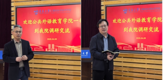 公共外语教育菠菜网 院长国林祥介绍了公共外语教育菠菜网 立足积极探索“专业+外语”复合型人才培养体系,在推动“一精多会”“一专多能”复合型人才培养方面的努力;副院长陈安榕介绍了大学英语教学框架,并针对计算机专业学生的学情做了深入分析。