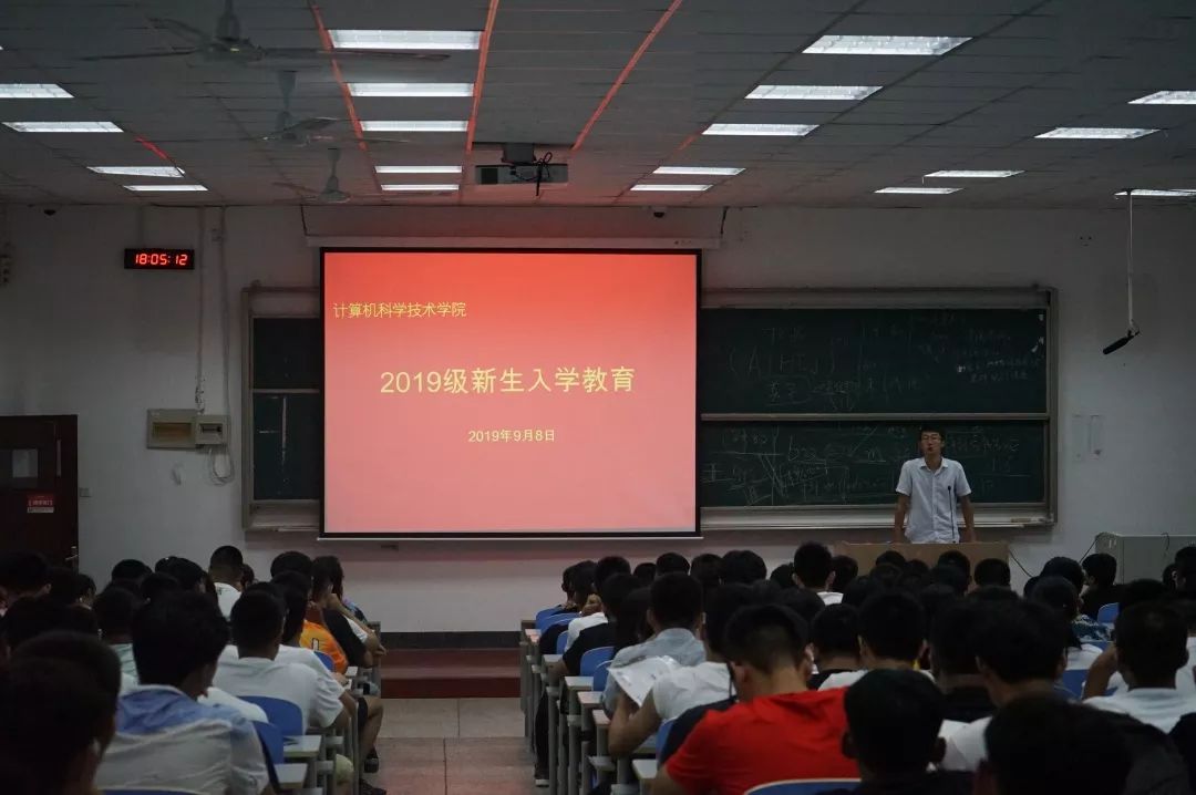 9月8日晚,菠菜网 2019级新生入学教育大会在博学楼101教室举行。院团委书记、2019级新生辅导员王洋洋,辅导员助理刘海、学生会主席张宇、学生会副秘书长纪凯强以及2019级带班学长学姐和全体新生参加了本次大会。