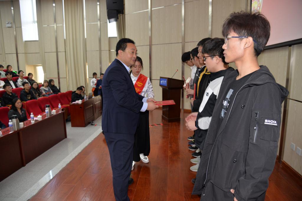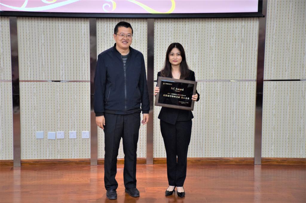 获奖学生代表王文涵、孙泽龙汇报了学习生活和考研就业情况,表达了对上海洲固电力科技有限公司奖学金资助和学校关心帮助的感激之情,表示将刻苦学习、奋发进取,以更加优异的成绩回报社会。