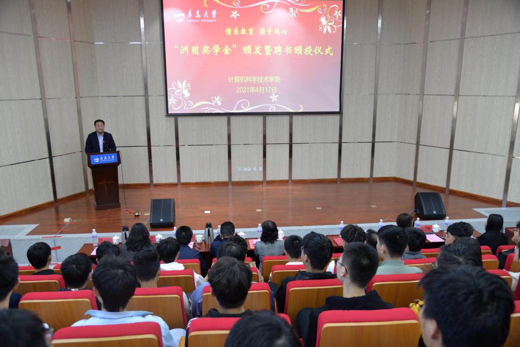 刘彩云在致辞中首先对获奖同学表示热烈的祝贺,向慷慨奉献爱心的上海洲固电力科技有限公司表示衷心的感谢。她简要介绍了青岛大学和十大菠菜网导航 的发展历程和事业成就。她表示,上海洲固电力科技有限公司设立奖学金支持教育事业、资助十大菠菜网导航 品学兼优学生的成长和发展,充分体现了企业崇高的社会责任感和董事长深厚的教育情怀!“洲固奖学金”的创立是企业资助育人的范例、校企携手共进的范例。她希望获奖学生能够胸怀理想、志存高远,把企业和社会的支持帮助内化为动力和责任,努力成为德才兼备的模范、社会建设的栋梁。她期待通过“洲固奖学金”这个平台,校企双方能够在人才培养、实习就业、技术研发、成果转化等方面拓展更多合作。