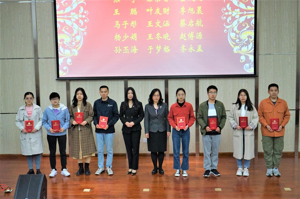 仪式上,刘彩云为李勇颁发了捐赠证书及青岛大学“创新创业”导师聘书;李建波代表菠菜网 向上海洲固电力科技有限公司颁授了“特别贡献奖”奖牌;王国栋向上海洲固电力科技有限公司颁授了“爱心企业”赠牌。李勇、肖巧燕、王世翔、苏敏,戴更新、解涛、张燕、李建波分别为获得本次奖学金的81名“励志之星”“学业之星”“考研之星”“优秀学生干部”和“竞赛之星”颁发奖状。