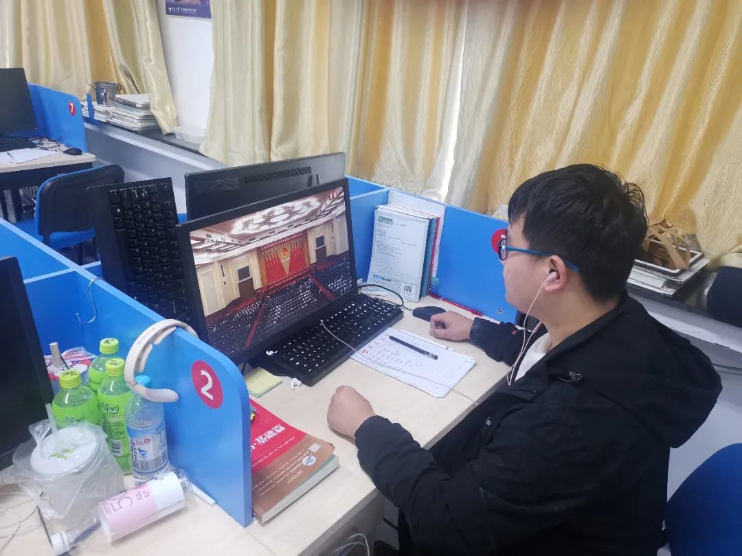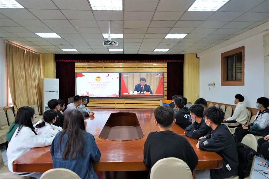 菠菜网 青年团干部在博知楼510会议室集体收看庆祝中国共产主义青年团成立100周年大会,其他青年学子在教室、实验室、宿舍等认真收看。