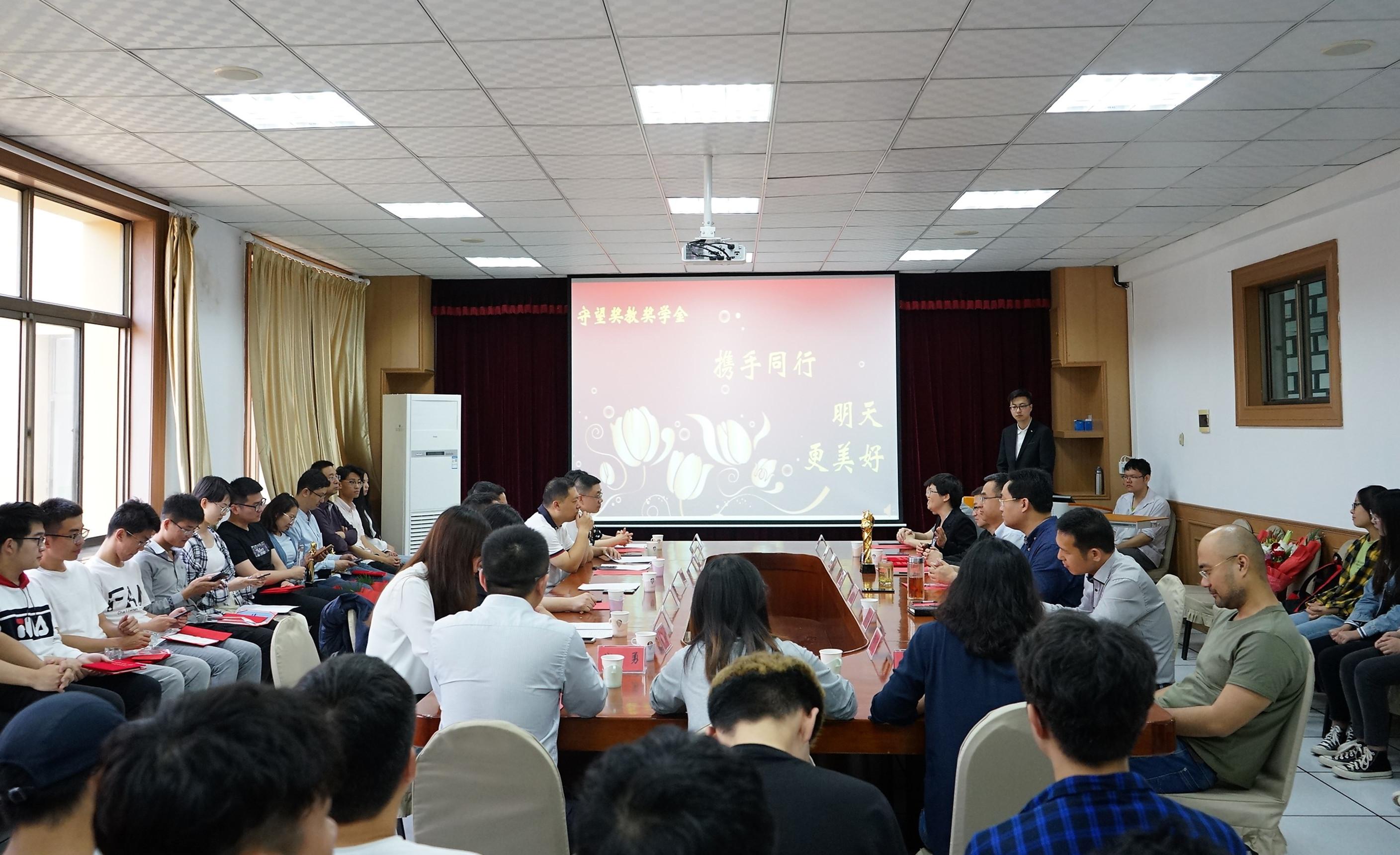 十大菠菜网导航 第二届“守望奖教奖学金”颁奖仪式5月26日上午在博知楼510会议室举行,12位师生获颁“守望奖教奖学金”。院党委书记尹增刚、院长李建波,“守望奖教奖学金”管理委员会委员暨1998级优秀校友代表,教学系党政负责人代表、学生工作办公室负责人及2017级、2018级学生代表50余人参加了颁奖仪式。