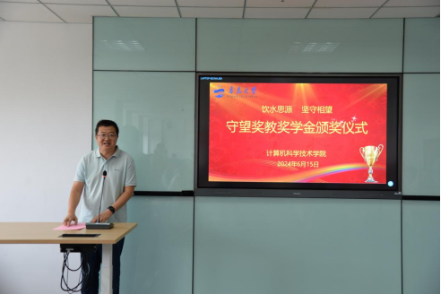 校友宋奕红代表“守望奖教奖学金”管理委员会和1998级校友作交流发言。软件工程系主任陈宇、计算机科学与技术(创新班)专业2021级学生翟晓迪分别代表获奖教师和学生发言。