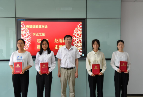 宋弈红、计晓斐、王海涛、张岩、瞿新吉五位校友分别为获得“实践之星”称号的伊秀红、祝海珍,获得“学业之星”称号的赵彤、赵雨轩、翟晓迪、史荣雪,获得“竞赛之星”称号的李坤鹏、代自超、白聿雄、赵汝恒,获得“考研之星”称号的毕经源、陈博锐、陈梦琦、陈同伟、邢振洋、曾凡、张骥远、翟树伟颁发荣誉证书。