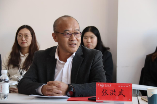 天津固得机电设备销售有限公司董事长、1992级计算机专业张洪武校友代表5位校友致辞。他回顾了自己与同窗好友在母校的求学时光,表达了对母校的深厚感情。他通过对比求学时在机房看见电脑时的激动和如今人工智能成为诺贝尔奖的最大赢家,讲述人工智能的飞速发展所面临的机遇和挑战等,勉励学弟学妹们树立终身学习的理念,积极培养对新鲜知识的热切追求与无尽好奇,持续不断地汲取新知。同时他们希望通过设立青岛大学计算机“伟友”智能实验室建设基金,为学校在计算机科学领域内的教学研究提供支持,助力学弟学妹们成长成才。