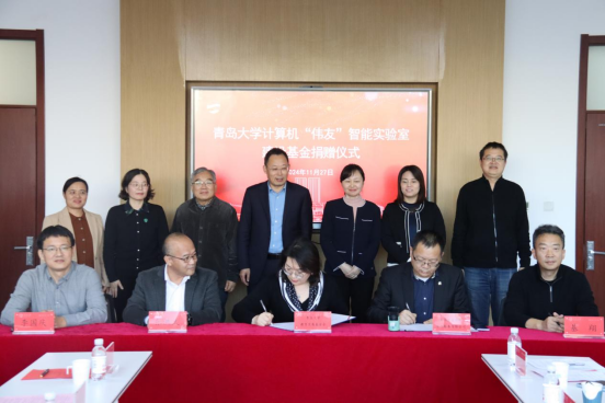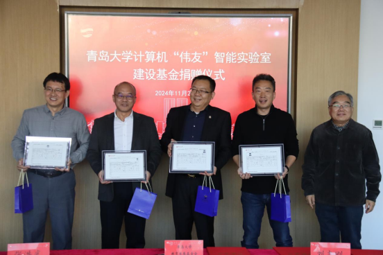 11月27日下午,青岛大学计算机“伟友”智能实验室建设基金捐赠仪式在学校慧创空间302会议室举行。1992级计算机专业校友刘志刚、张洪武、基翔、李国庆,党委常委、副校长刘恩贤出席仪式。十大菠菜网导航 党委书记潘秋鸿主持仪式。