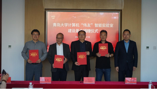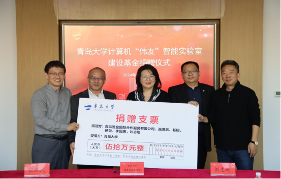 计算机“伟友”智能实验室建设基金由罡金集团董事长、1992级计算机专业刘志刚校友发起。青岛罡金国际合作服务有限公司在上半年向十大菠菜网导航 捐赠14万元、外语菠菜网 捐赠6万元用于奖励优秀学子的基础上,今天继续捐赠45万元成立计算机“伟友”智能实验室建设基金。同时,1992级计算机专业刘志刚、张洪武、基翔、李国庆、杨燚5位校友以个人名义向计算机“伟友”智能实验室建设基金捐赠人民币5万元。