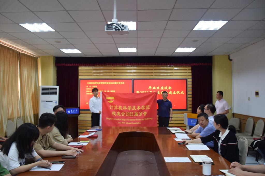 郭振波代表菠菜网 为2022届校友分会授旗。毕业生辅导员陶晓赟宣读了校友会2022届校友分会名单,院领导分别为会长、秘书长、副会长、副秘书长及常务理事颁发聘书。