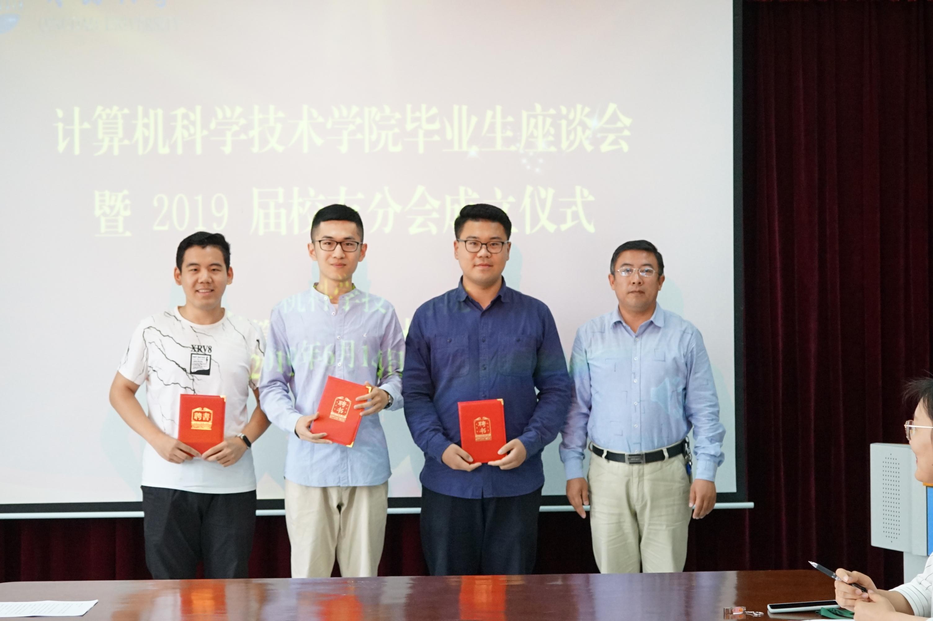 6月14日上午,菠菜网 在博知楼510会议室举行“毕业生座谈会暨2019届校友分会成立仪式”。院长李建波,院党委副书记周鹏,副院长于佳、王国栋,学生党支部书记于茜,毕业生辅导员刘伟,及毕业生代表出席仪式。院学工办主任姜彬主持仪式。